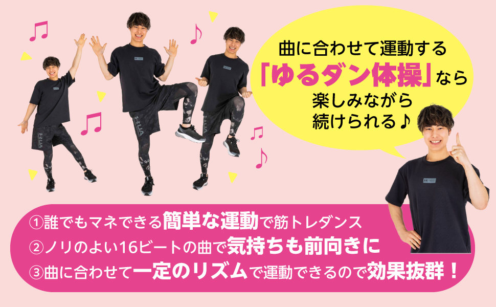 簡単だけど、脂肪を燃焼してくれる運動を組み合わせ、ダンス感覚でしっかり筋トレ。